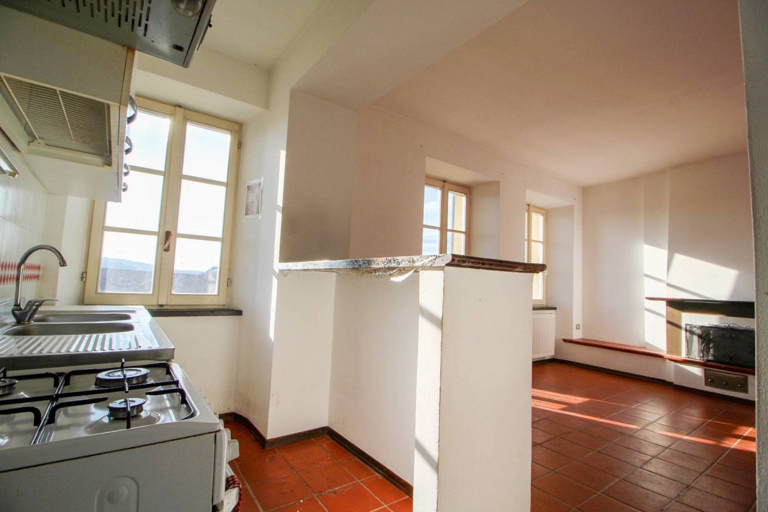 L'ampio soggiorno è il vero punto forte, reso unico da un suggestivo camino che crea l'ambiente ideale per le serate invernali. L'angolo cottura è pratico e ben integrato.